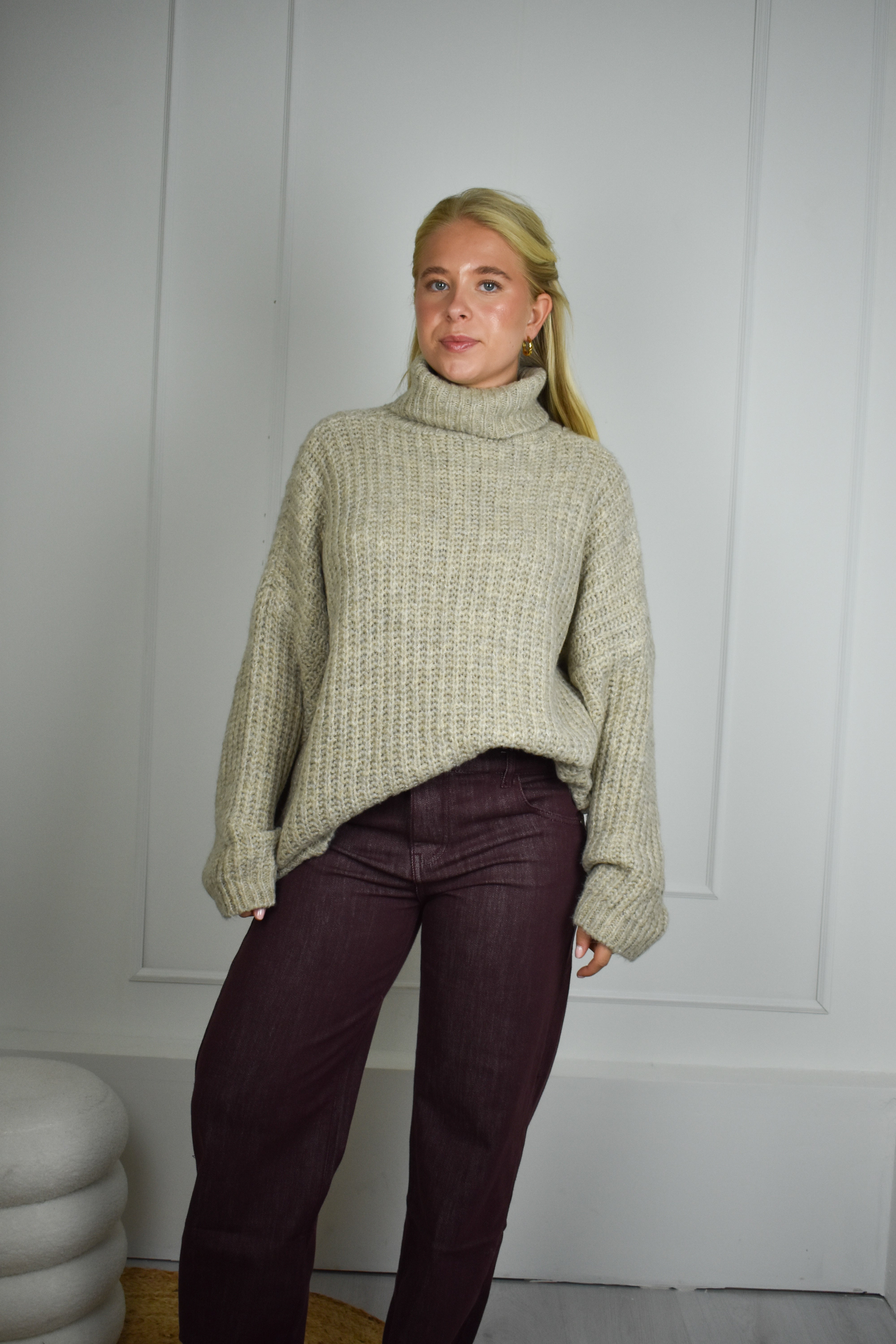 Heerlijk warme trui voor de koude herfst en winterdagen! De trui heeft een col en is lekker zacht dus kriebelt niet! De trui is one size en te dragen van een XS t/m een L/XL.