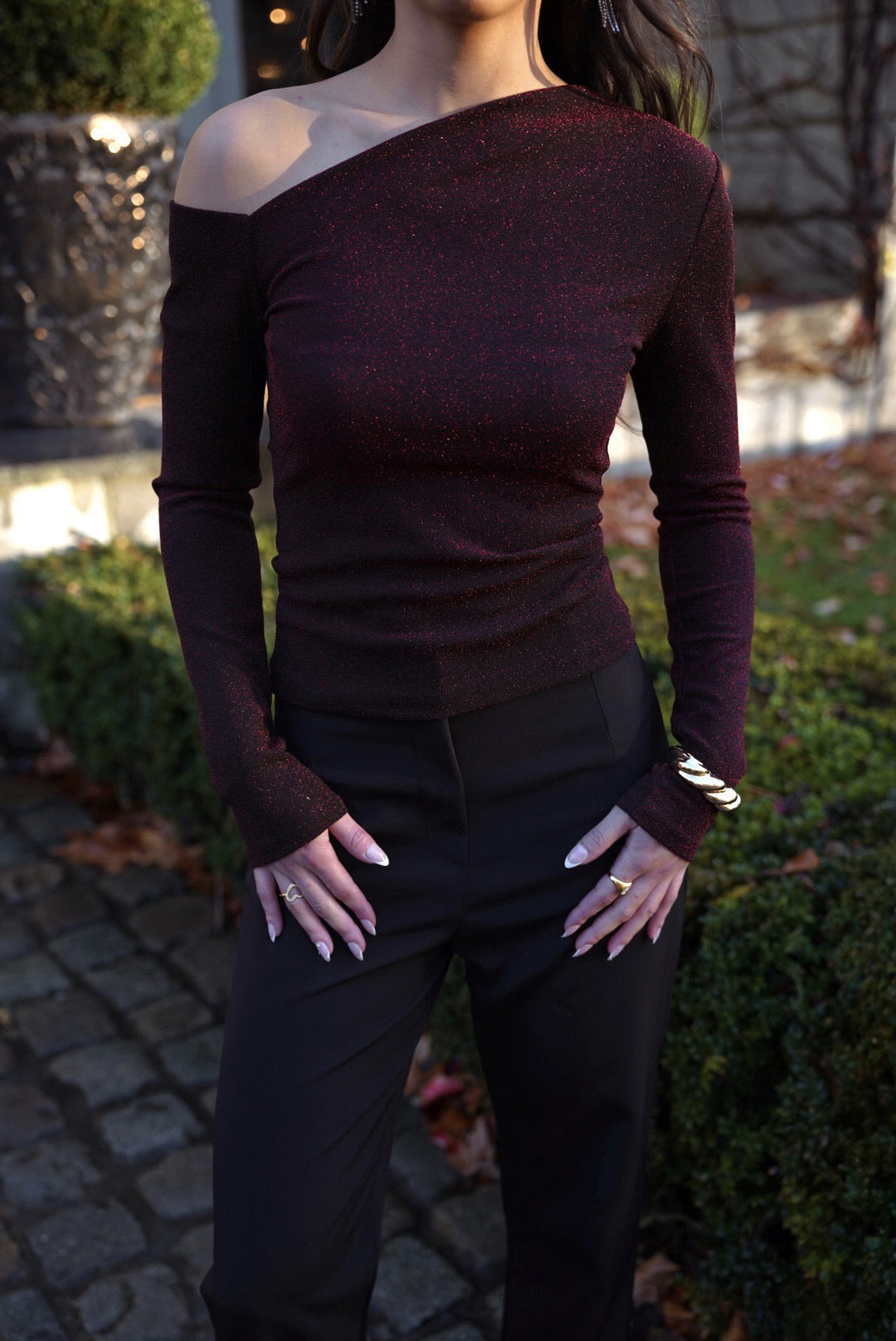 Mooie sparkle top. De top heeft een schuine halslijn en bevat veel stretch. Ook verkrijgbaar in het zwart.