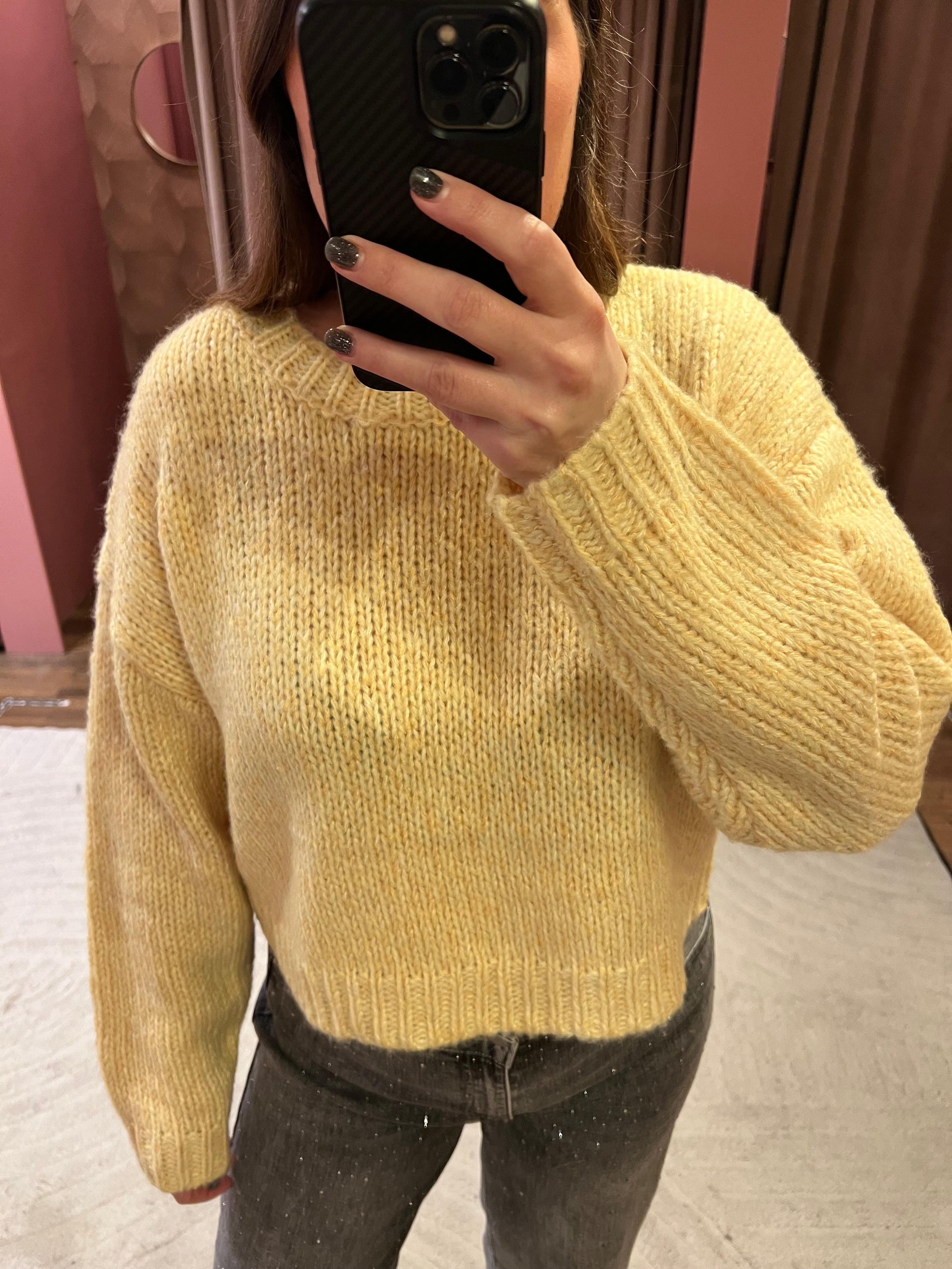 Mooie gele trui, die lekker zacht is. De trui is gemêleerd en kriebelt niet.
