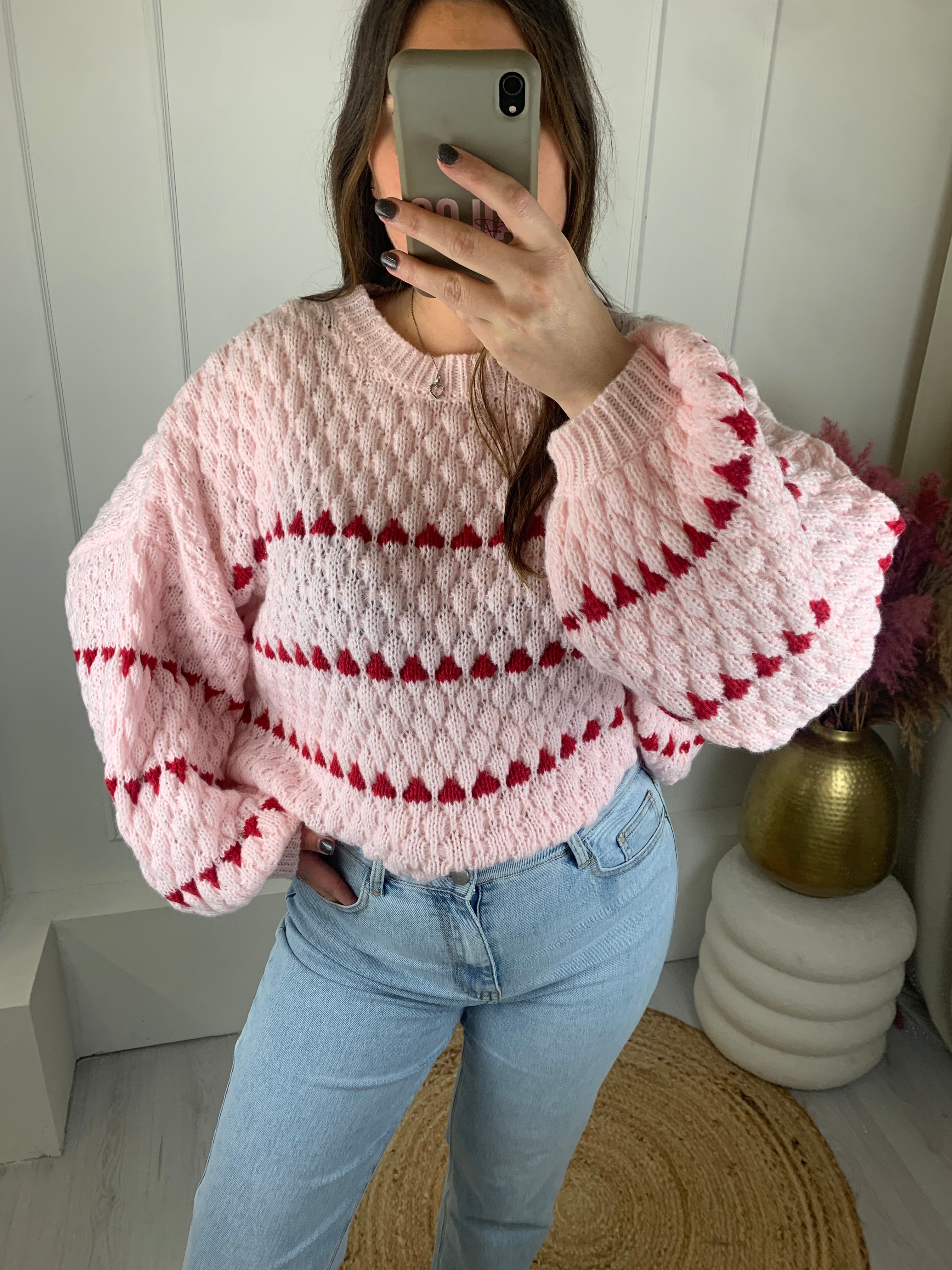 Mooie trui met een ajourprint en ingebreide driehoekjes op de hele trui.