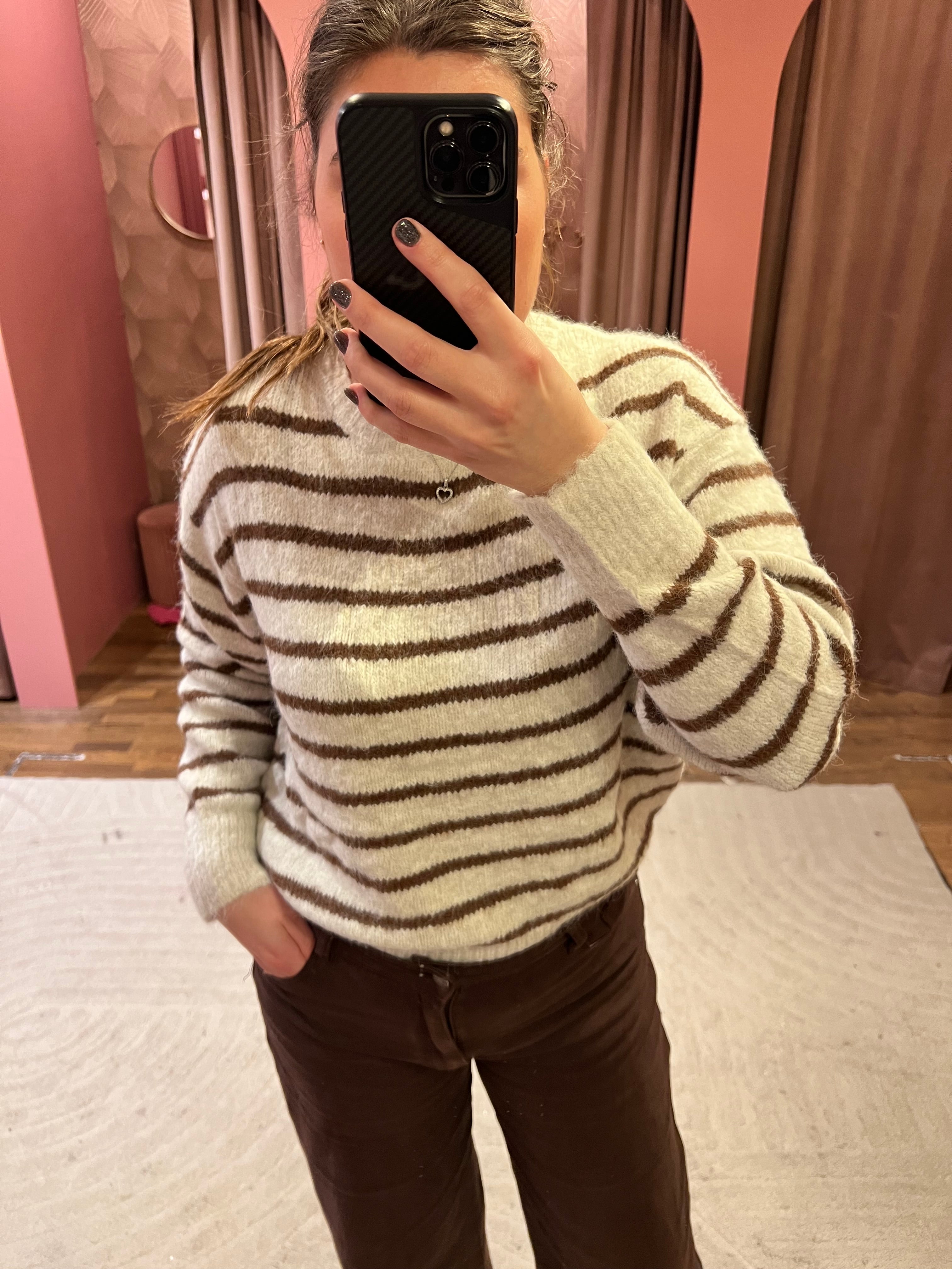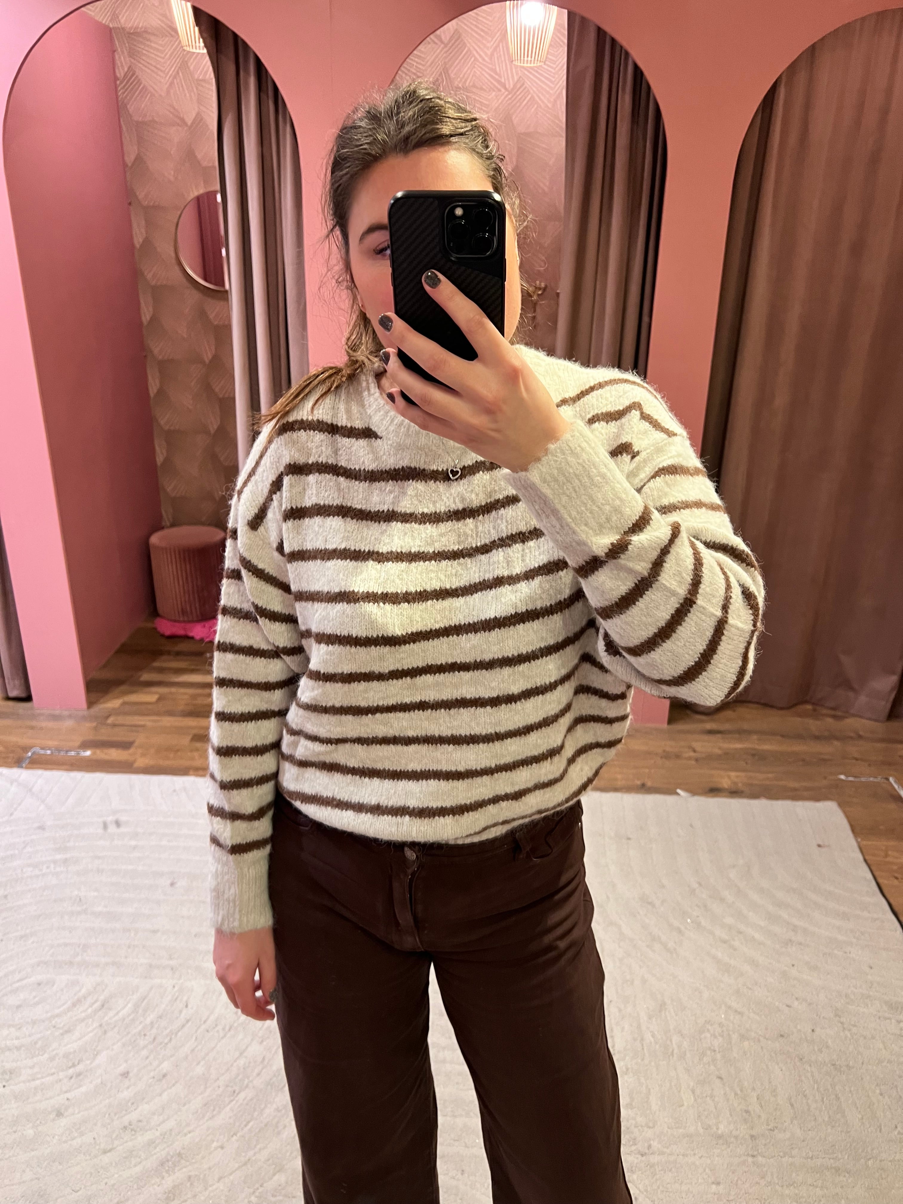 Mooie trui met strepen. De trui is gemaakt van een zachte stof en kriebelt niet! De trui is one size en te dragen van XS t/m L.
