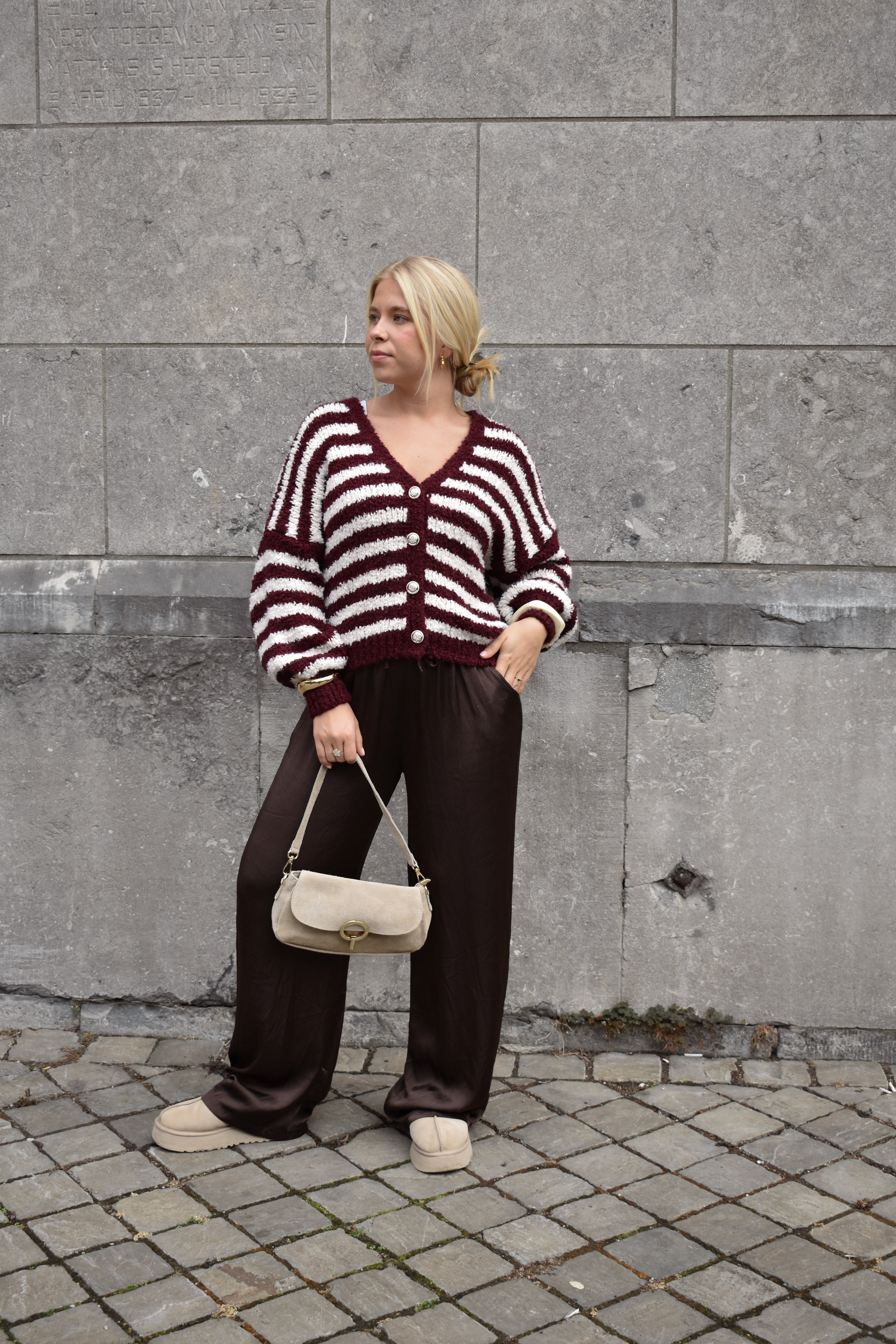 Mooie silky broek moet een elastieken tailleband. Leuk te combineren met een oversized trui. De broek is one size en te dragen van een XS t/m L.