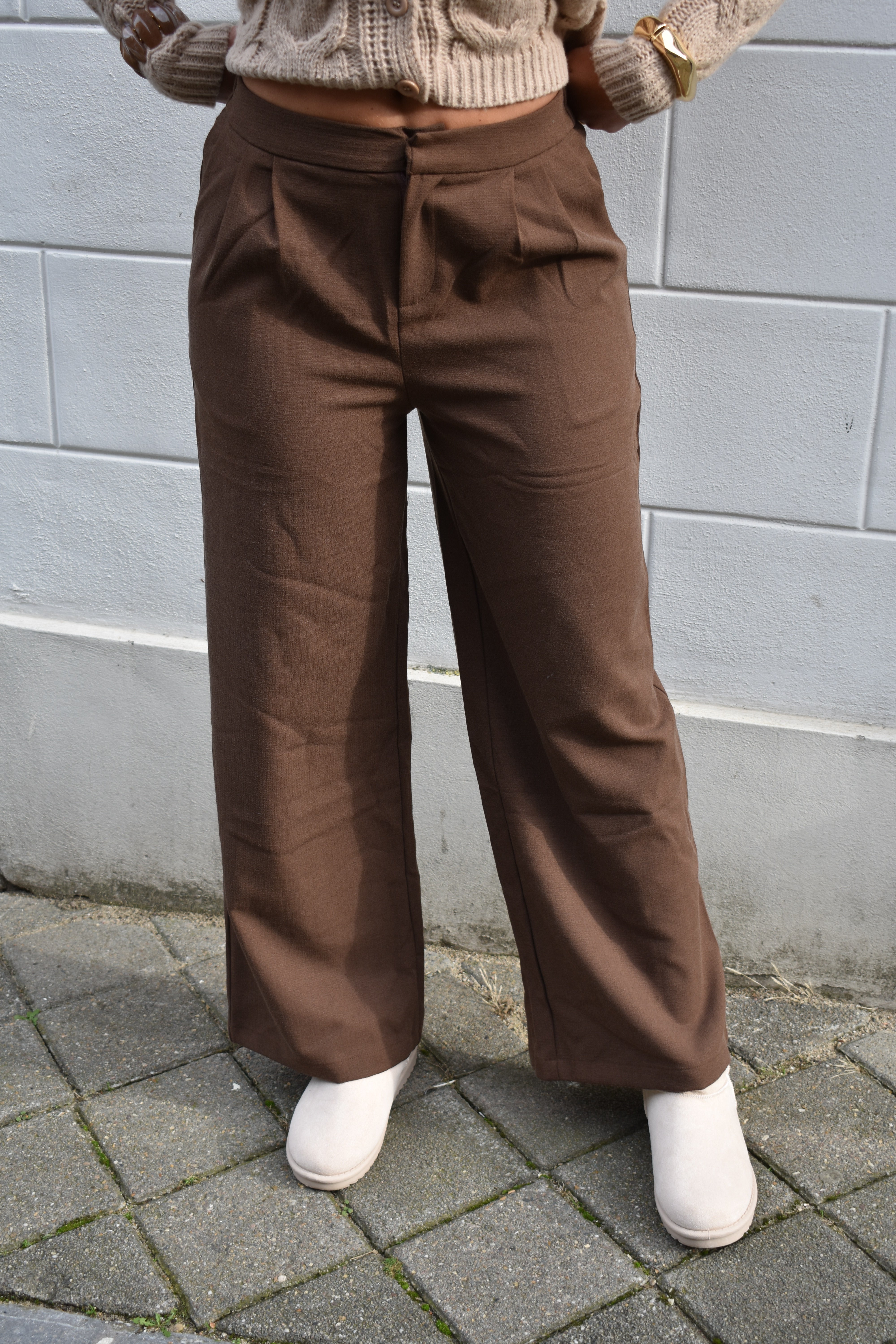 Deze prachtige pantalon in choco. Valt high waist en straight leg.