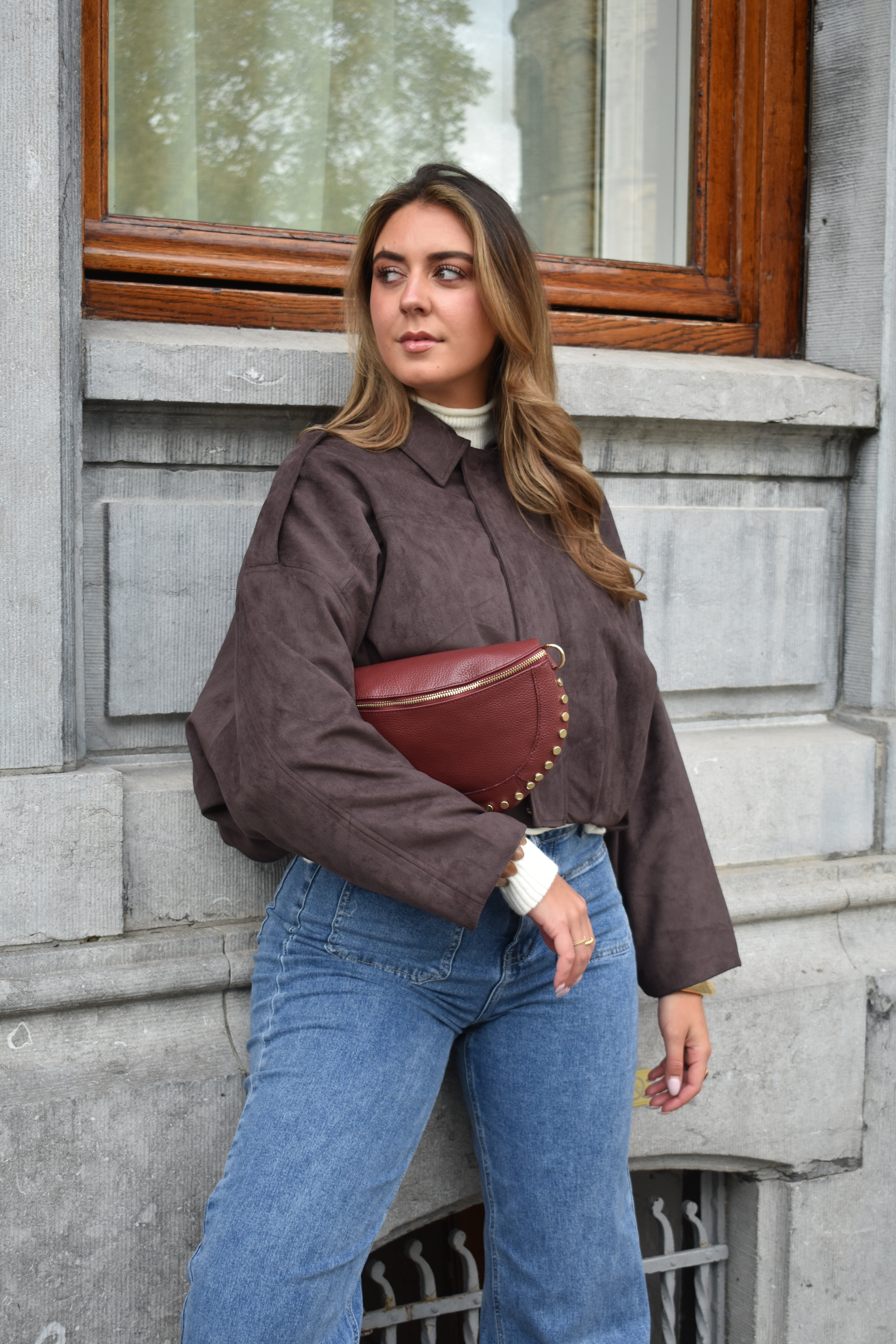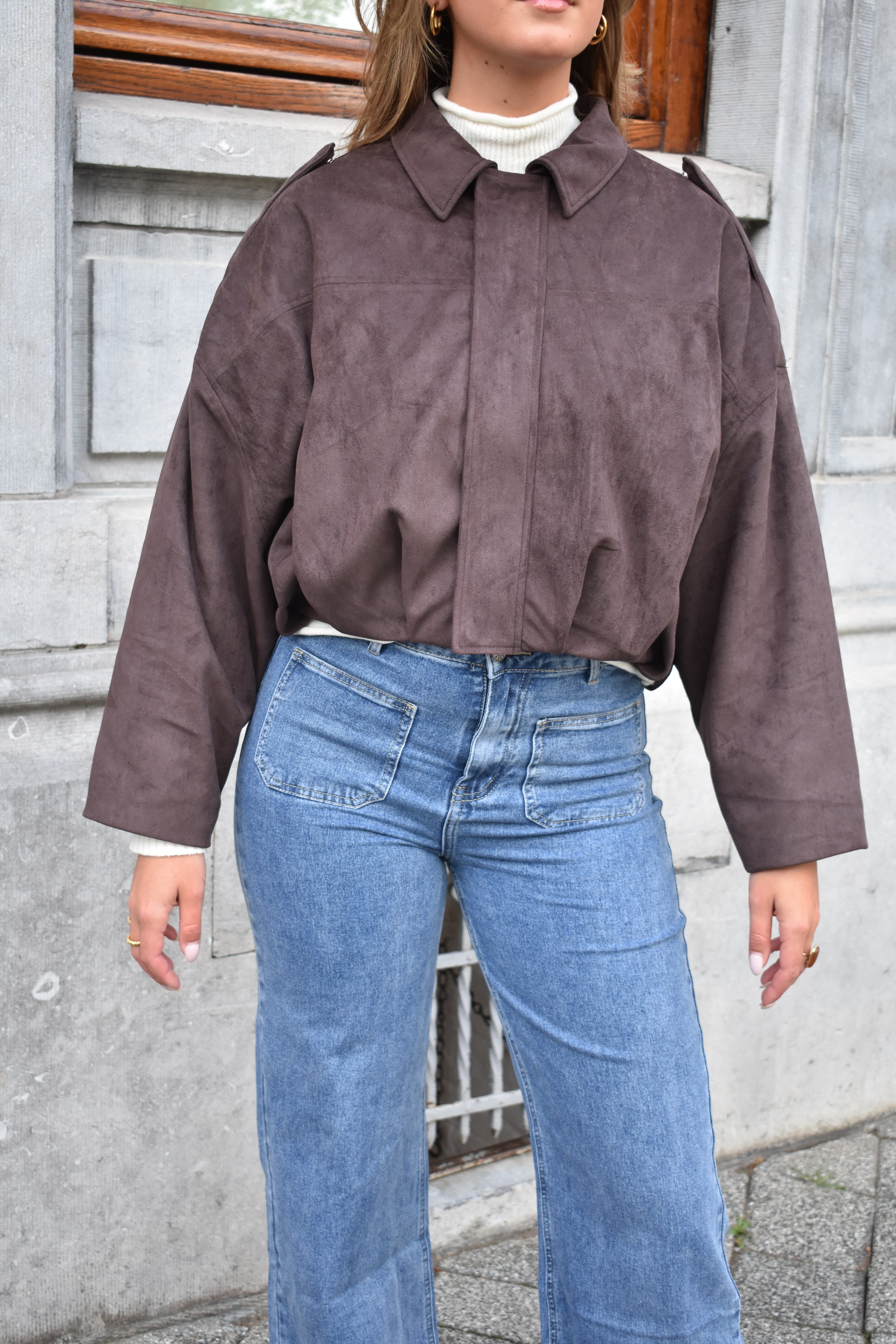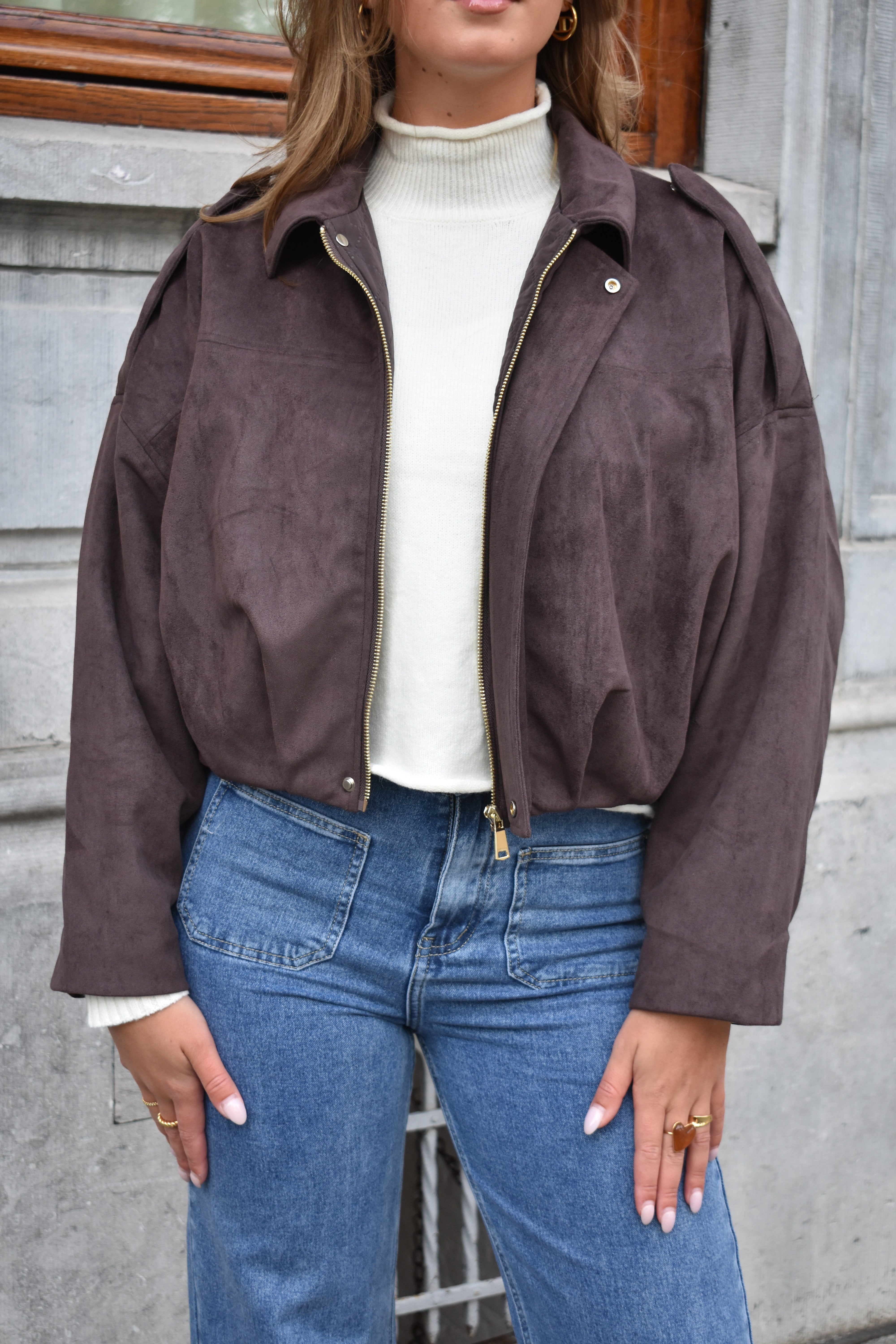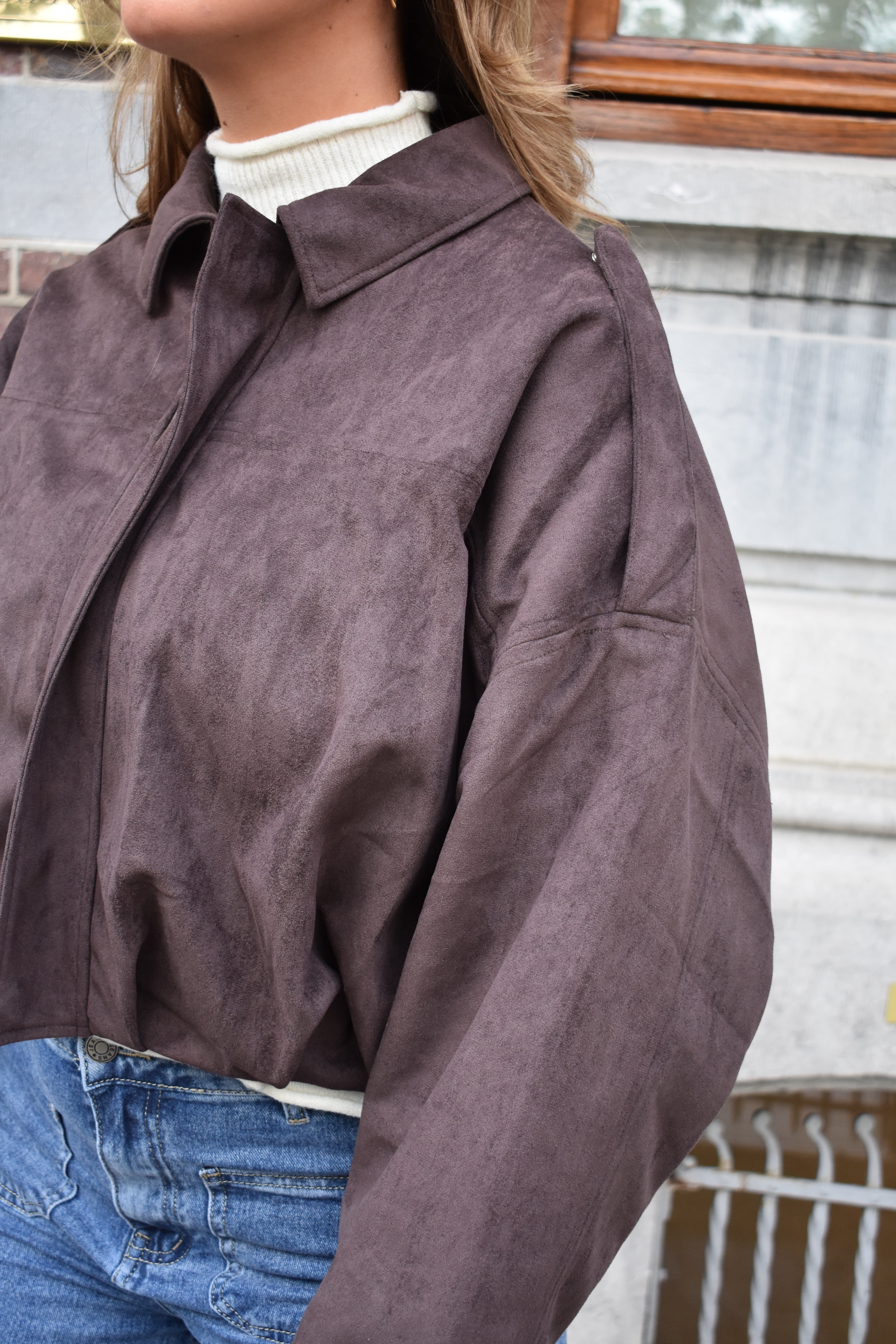 Deze suede look jacket heeft een mega leuk ballon model, hij is te krijgen in S/M & M/L.