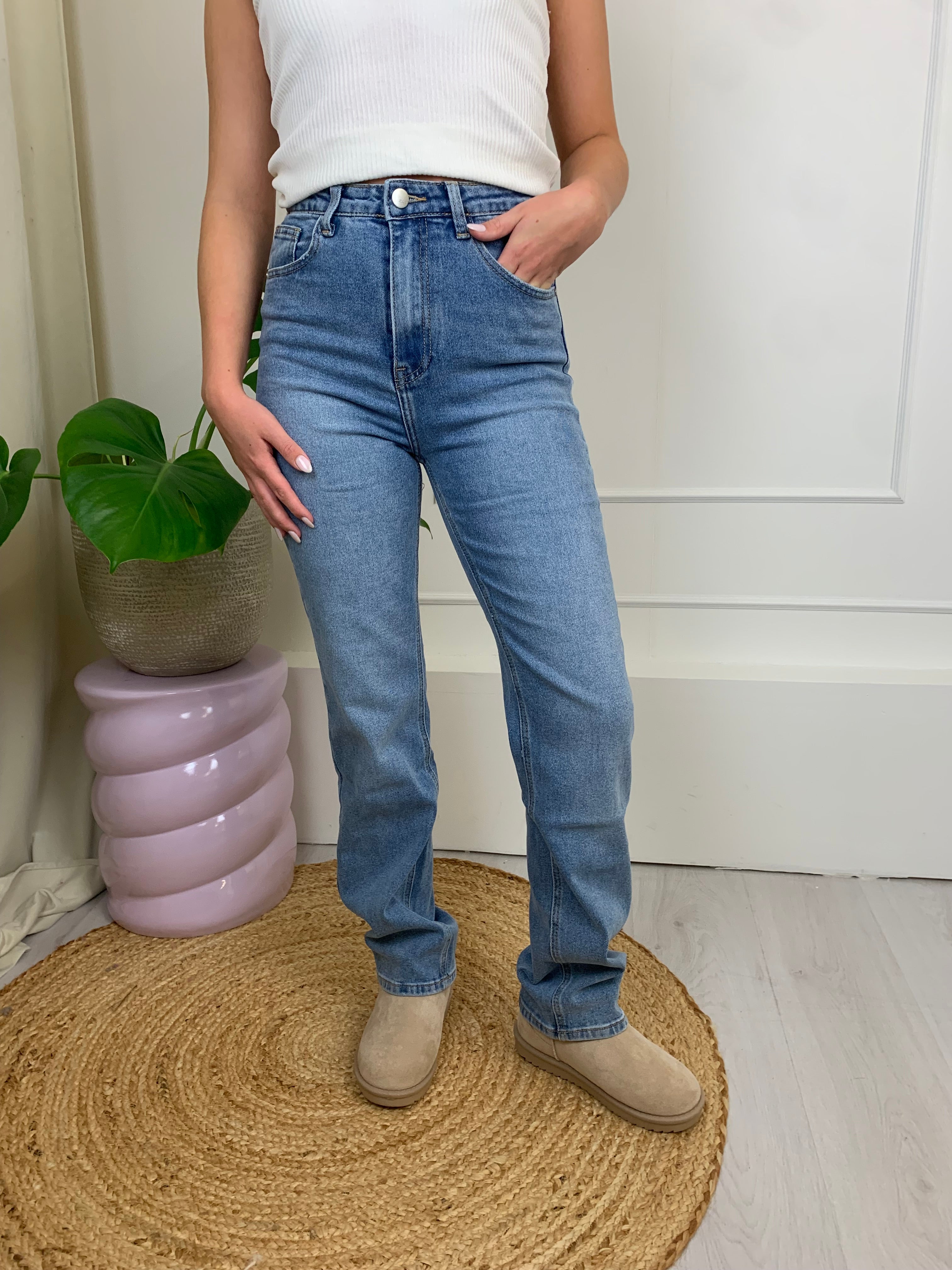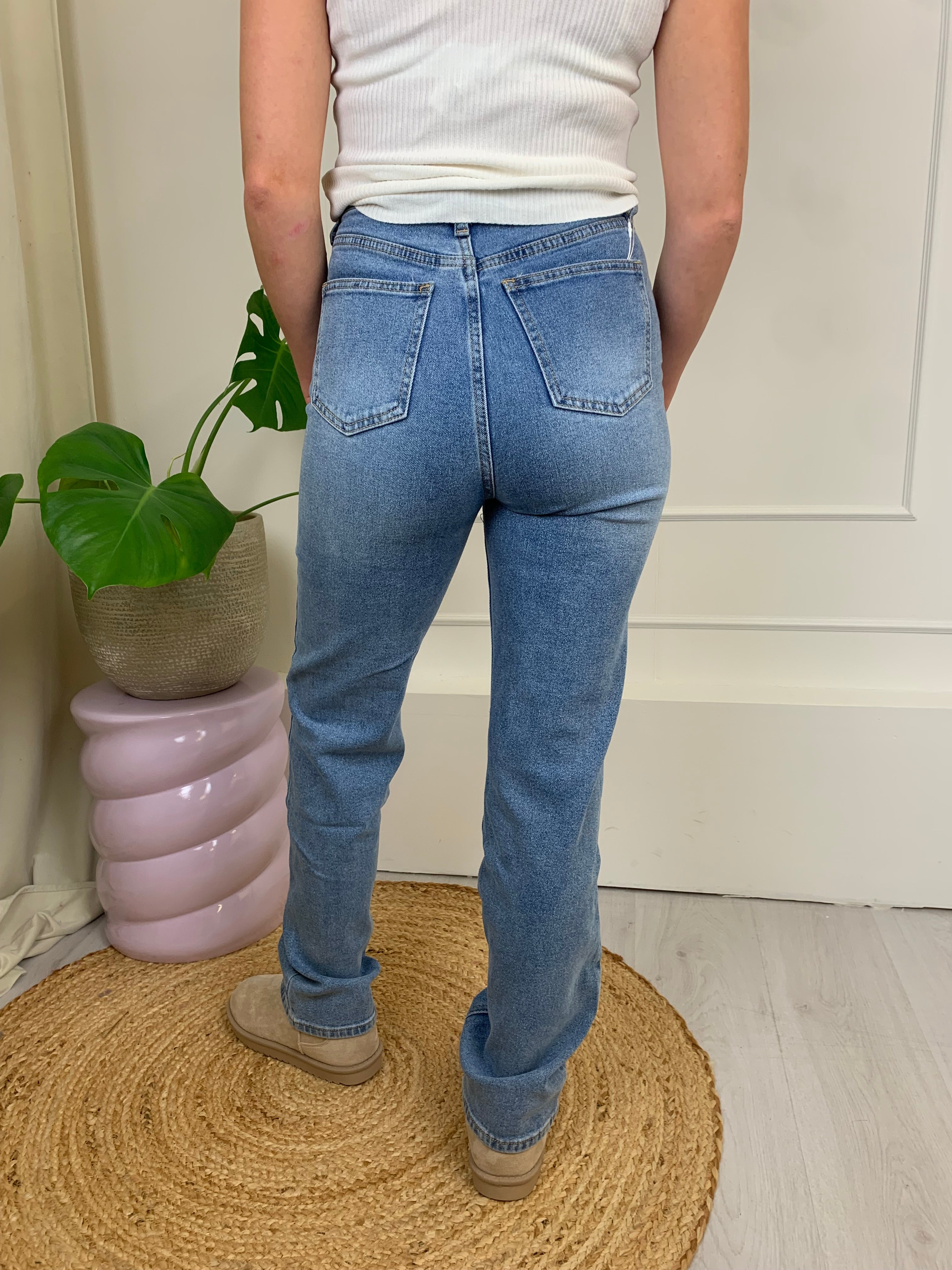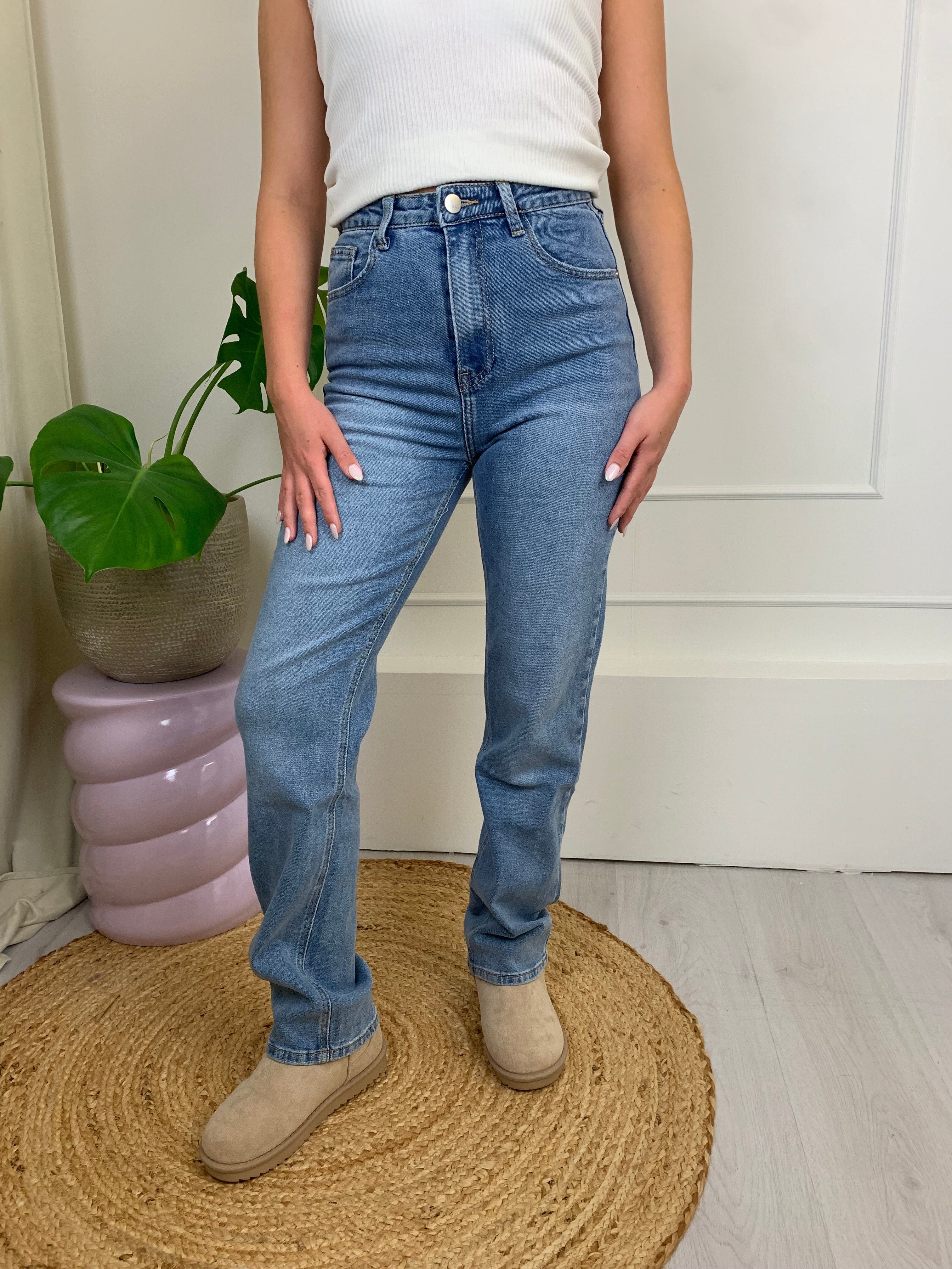 het is een mooie high waist jeans en straight leg fit. Met een super mooi denim kleurtje kan deze niet ontbreken in jou kast.