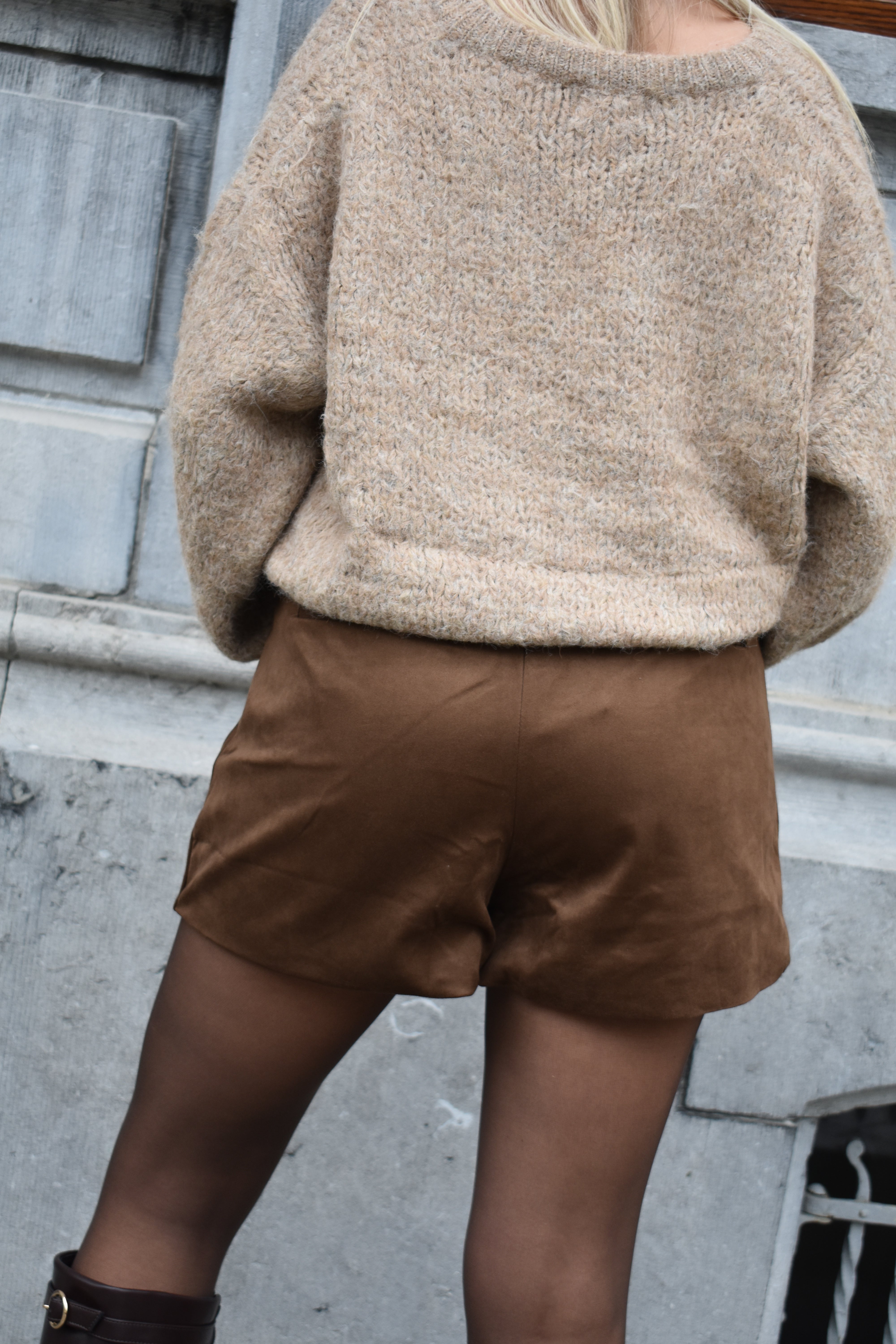 Mooie suède look skort! Het skortje is gemaakt van een heerlijk zacht stofje, heeft een rits aan de zijkant en is echt een musthave voor dit seizoen.