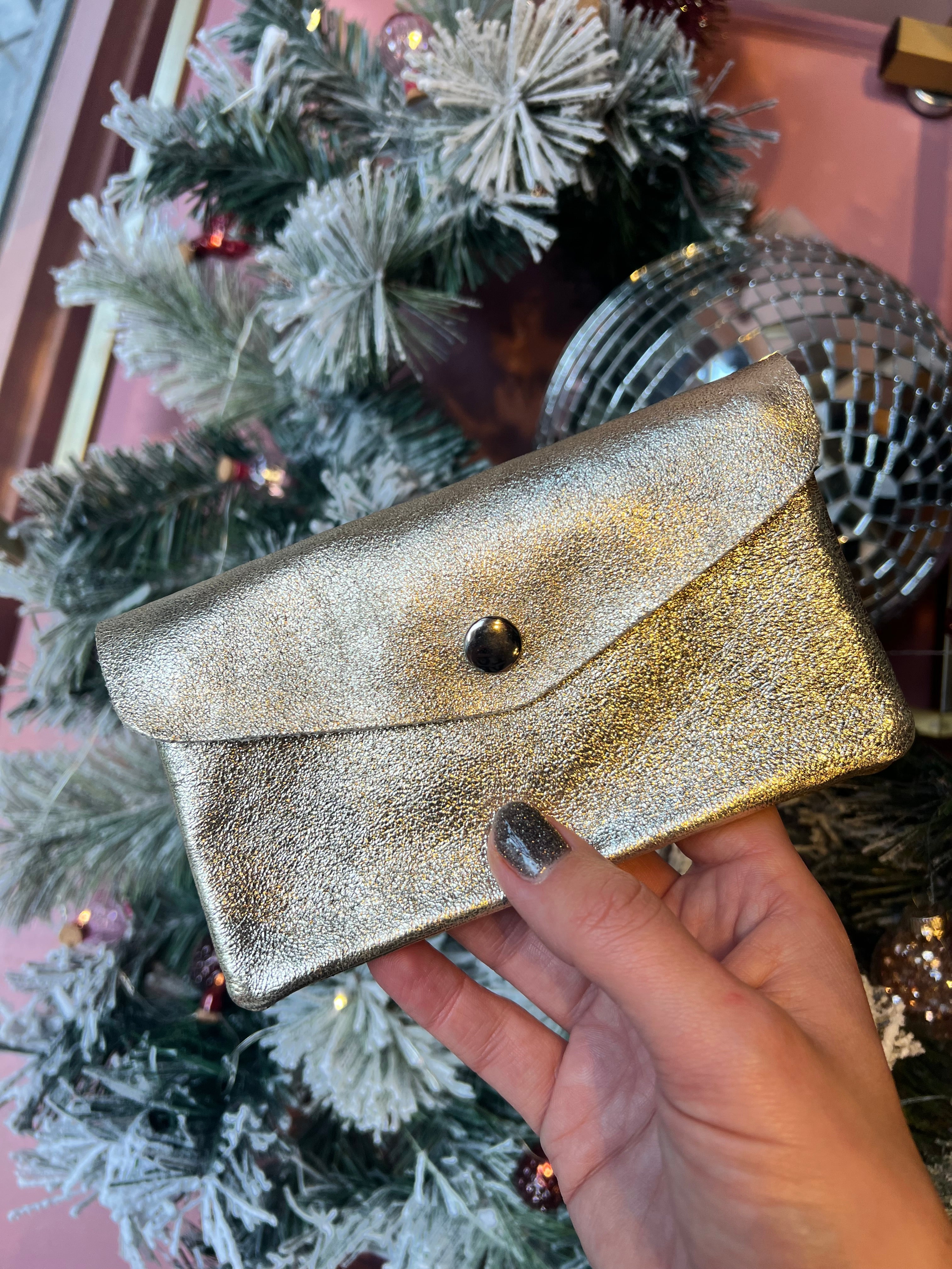 Mooie portemonnee met aan de binnenkant 2 vakjes voor briefgeld of pasjes en 1 vakje met een rits voor kleingeld. De portemonnee is gemaakt van 100% leer.