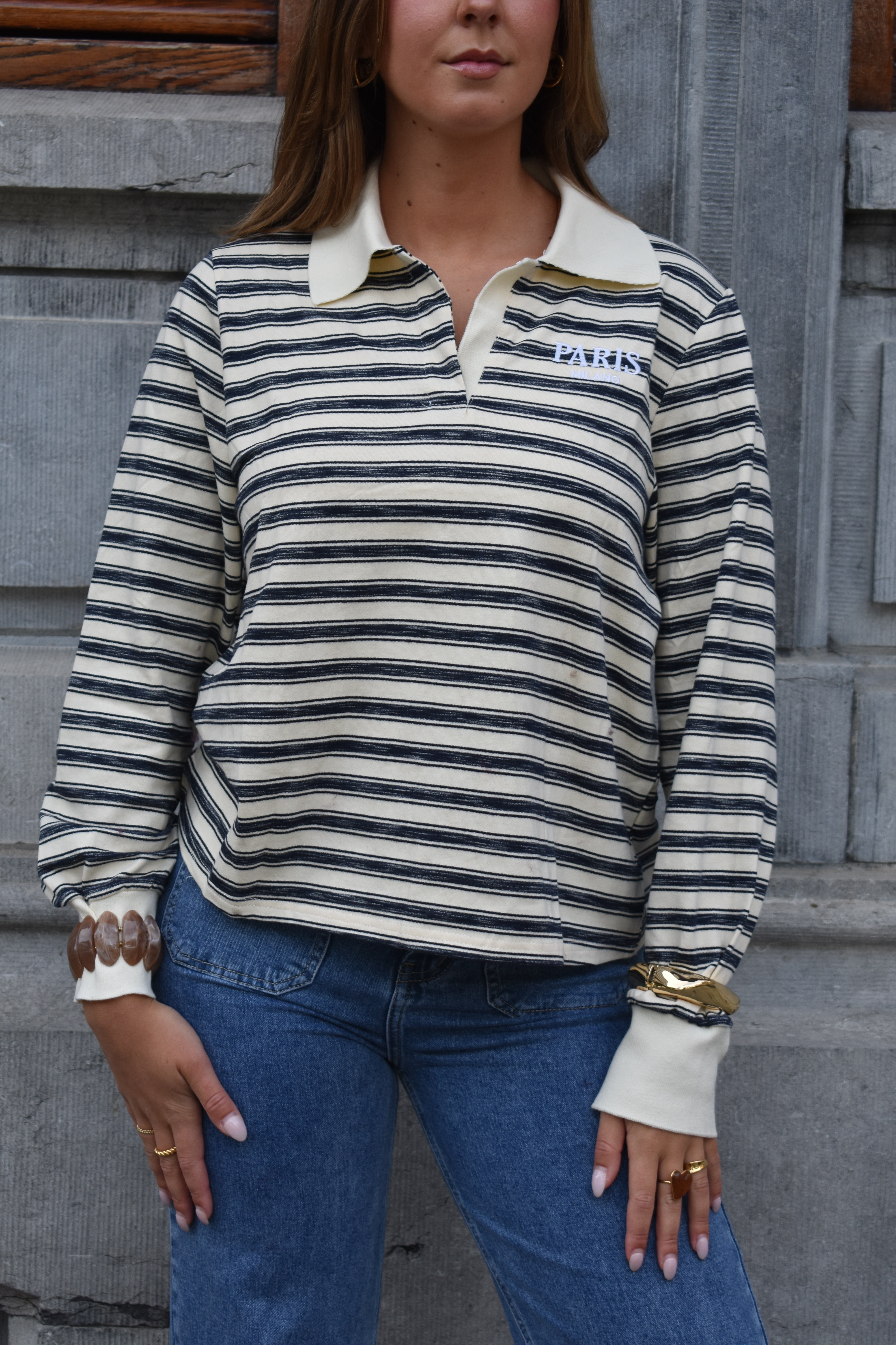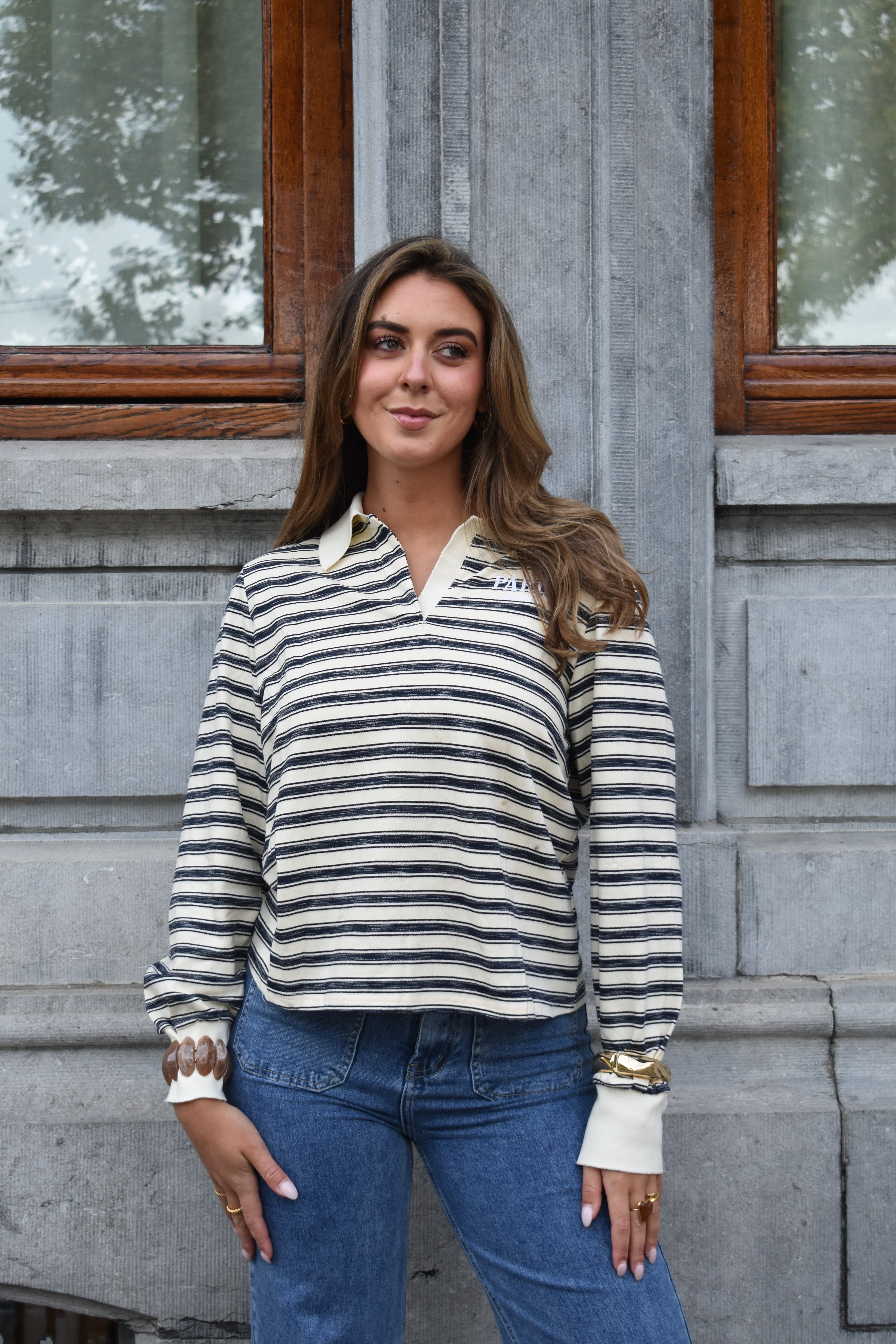 Mooie gestreepte top! is gemaakt van een heerlijk stofje en is verkrijgbaar in maat S, M & L.