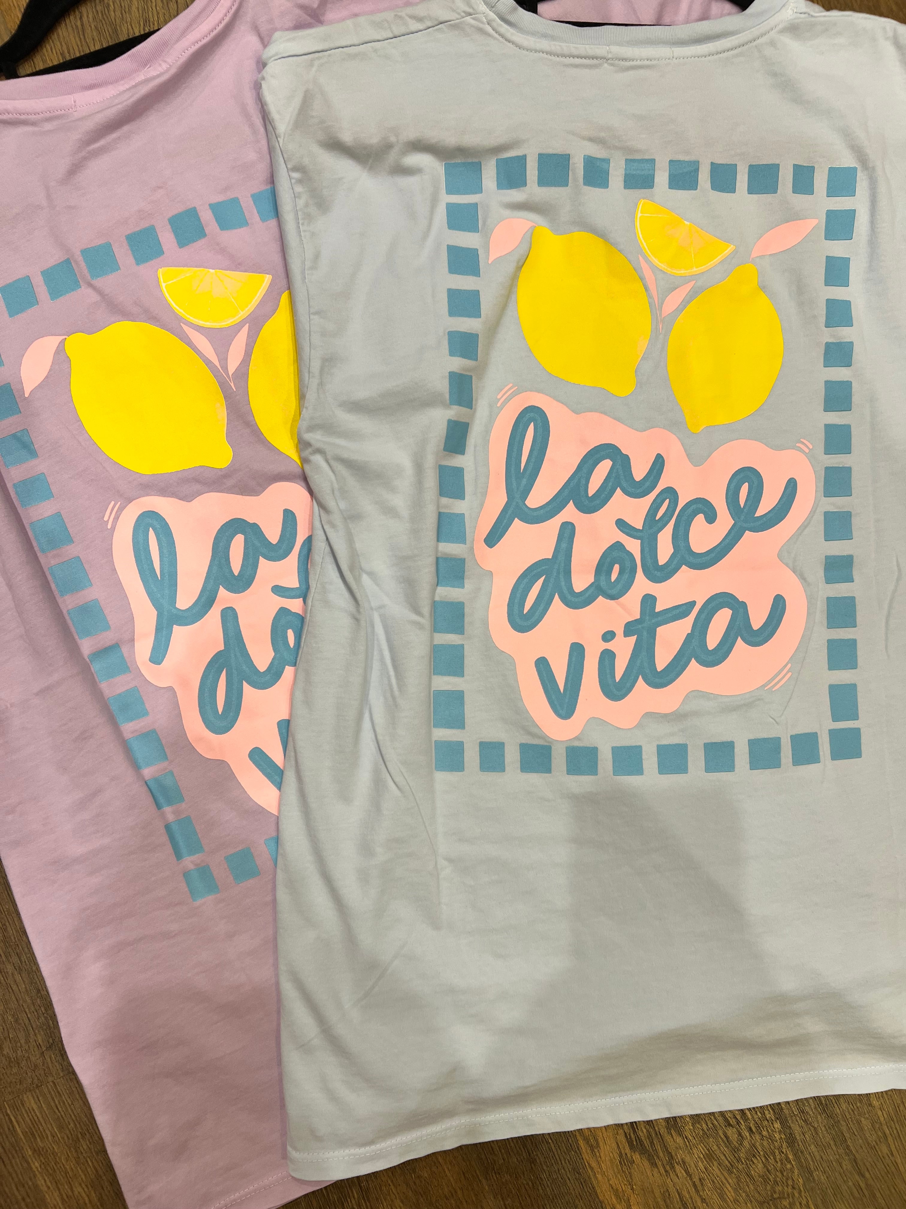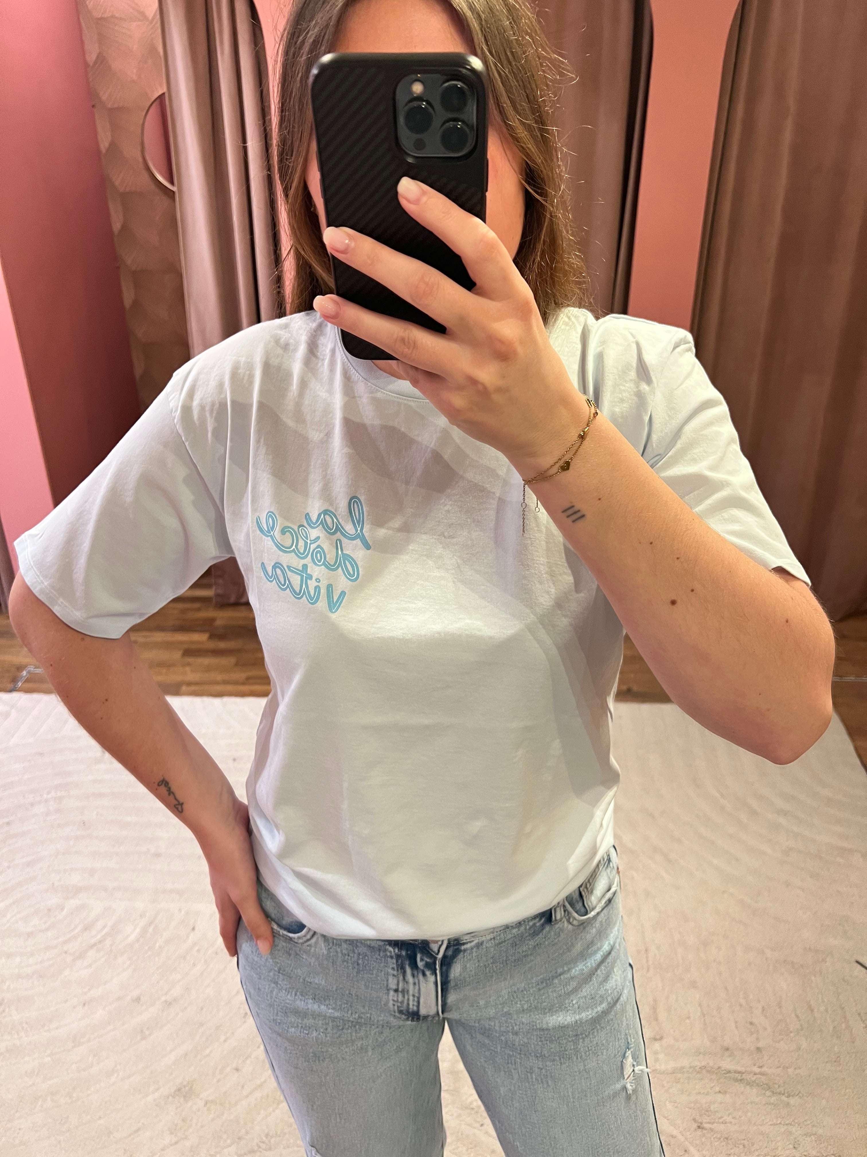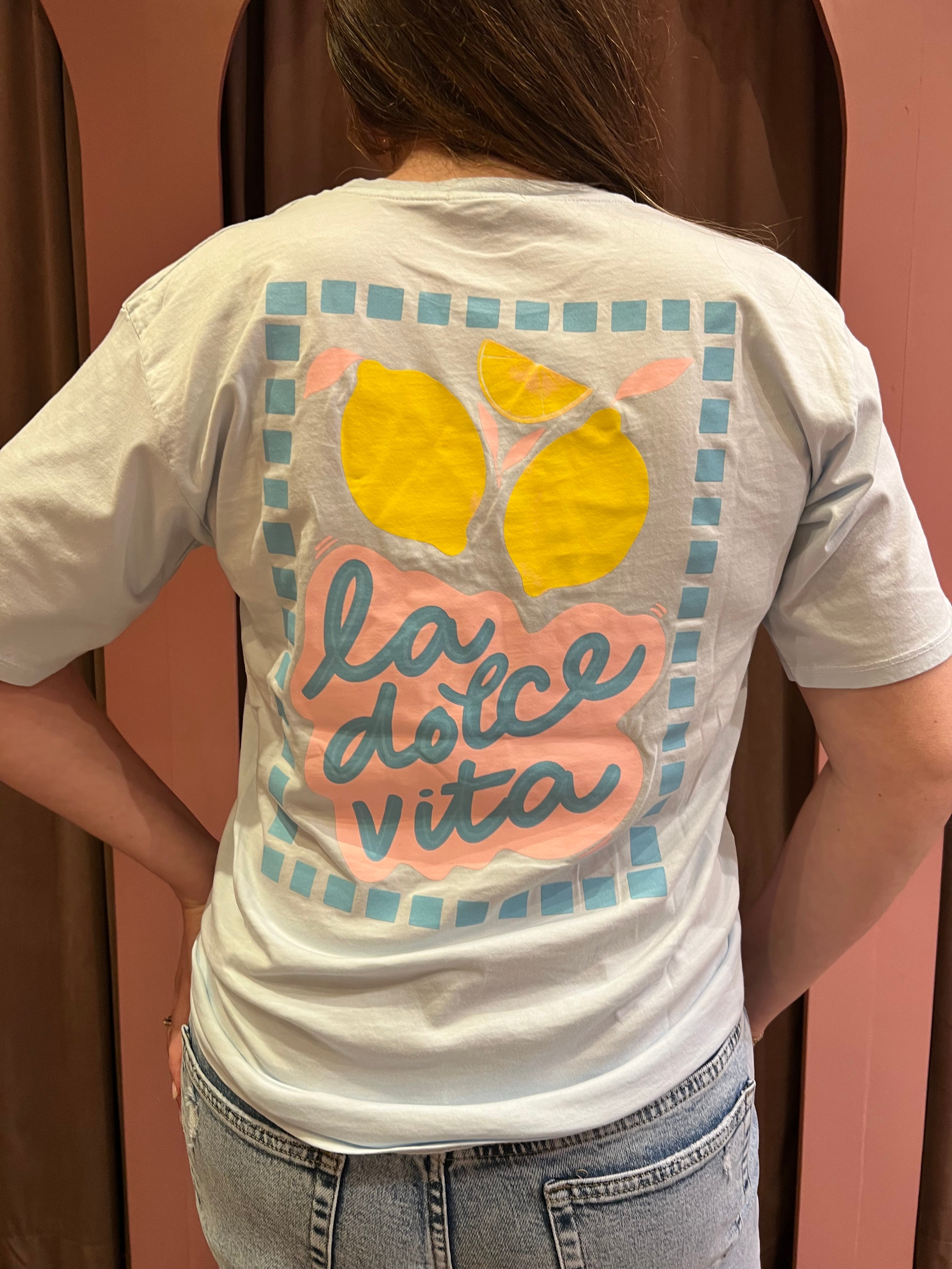 T-shirt met vrolijke print. 100% katoen dus heerlijk voor de warme dagen. Ook verkrijgbaar in lila.