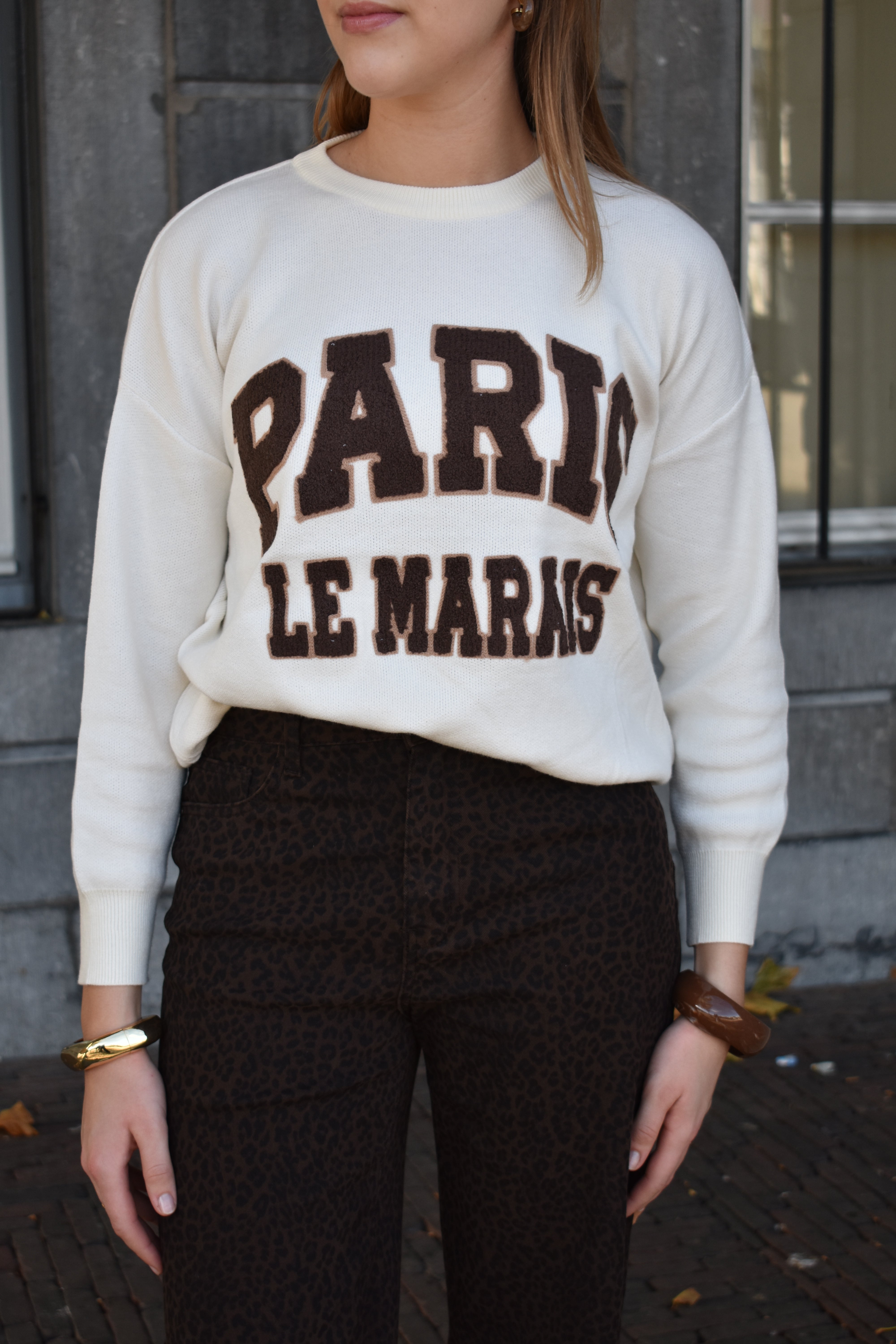 Heerlijke zachte trui met de tekst "PARIS LE MARIS". De trui is zacht en kriebelt niet.