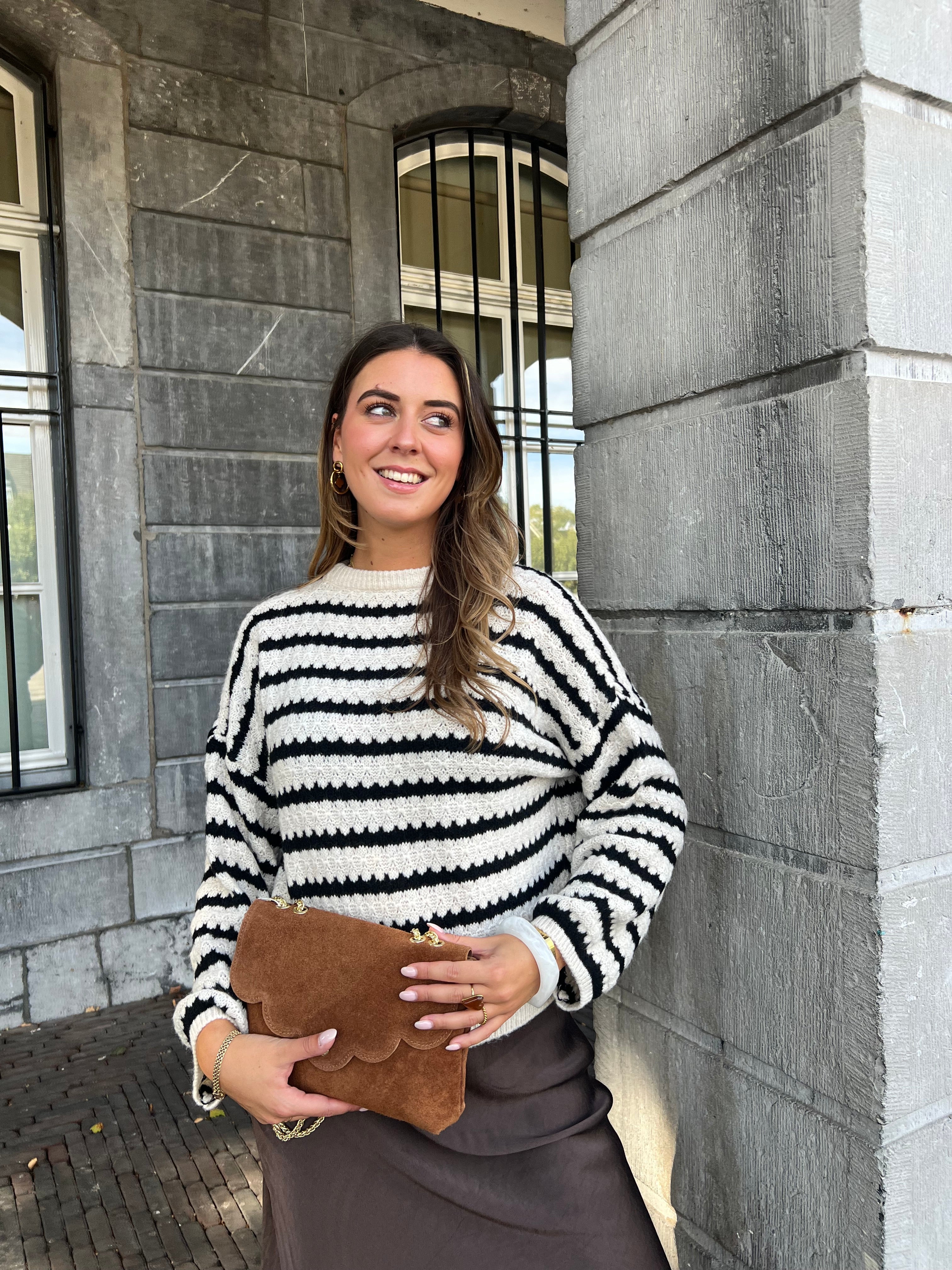 De trui is one size en te dragen van een XS t/m XL.