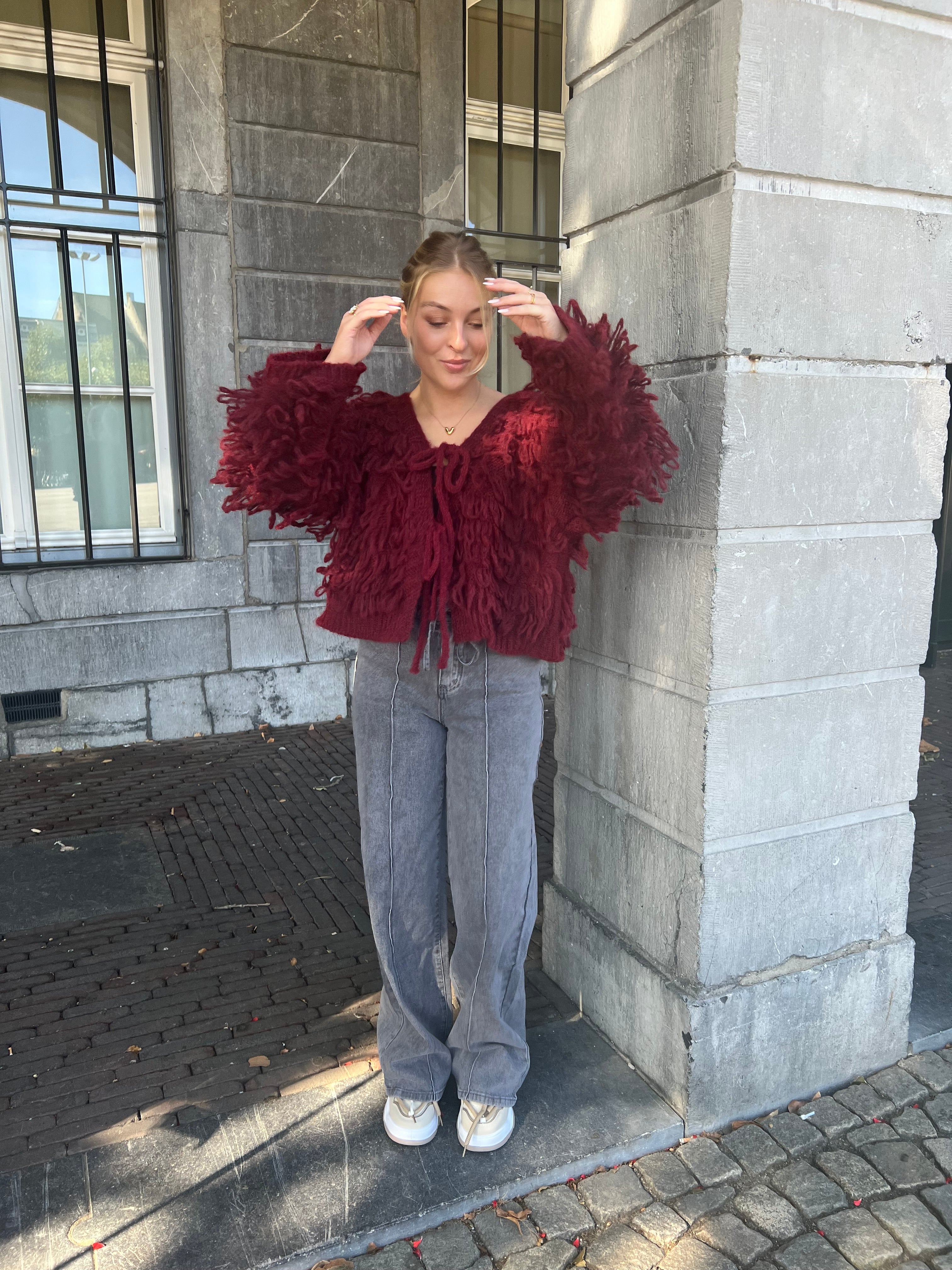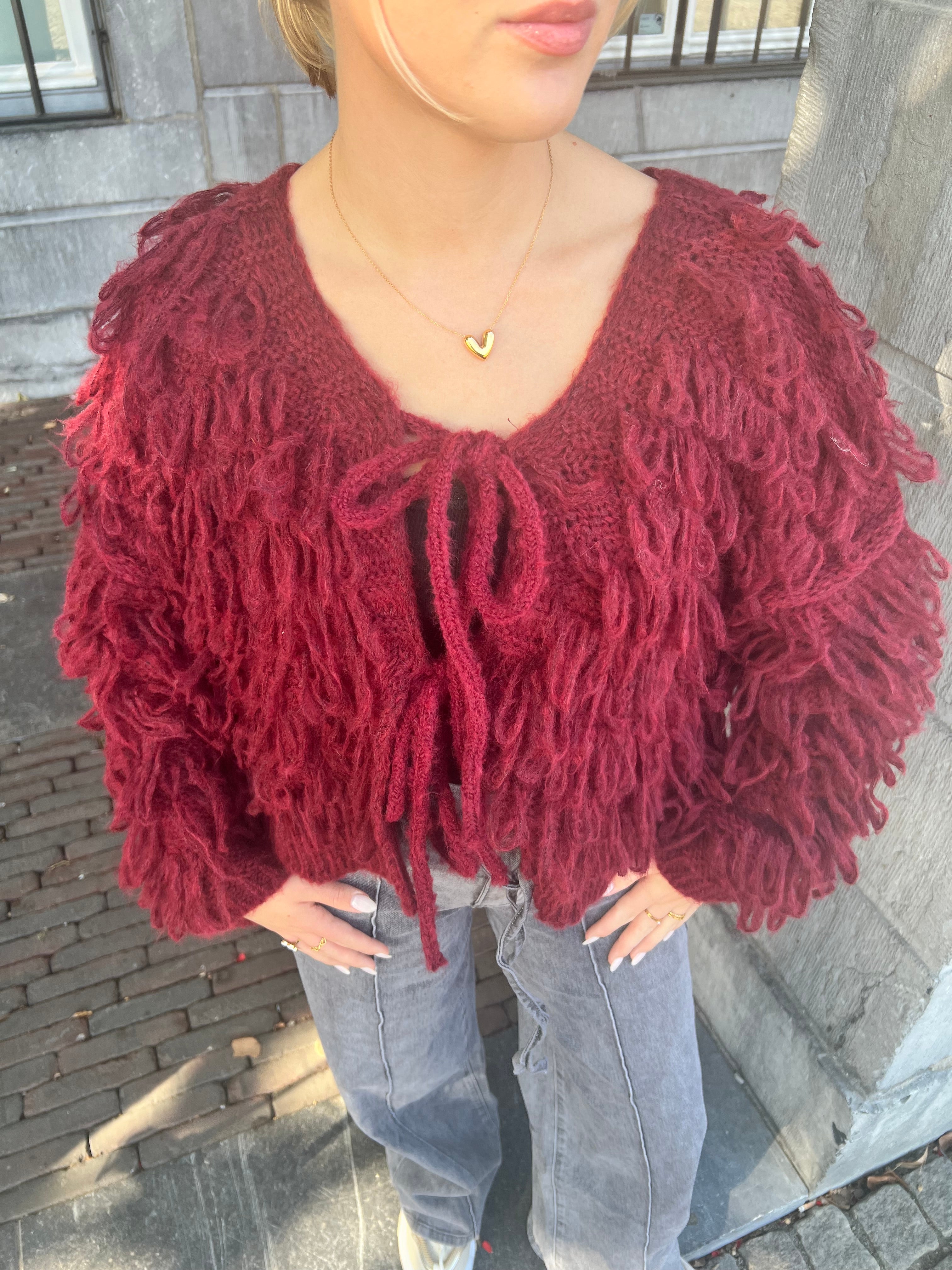 JAMY FRINGE CARDIGAN | BORDEAUX