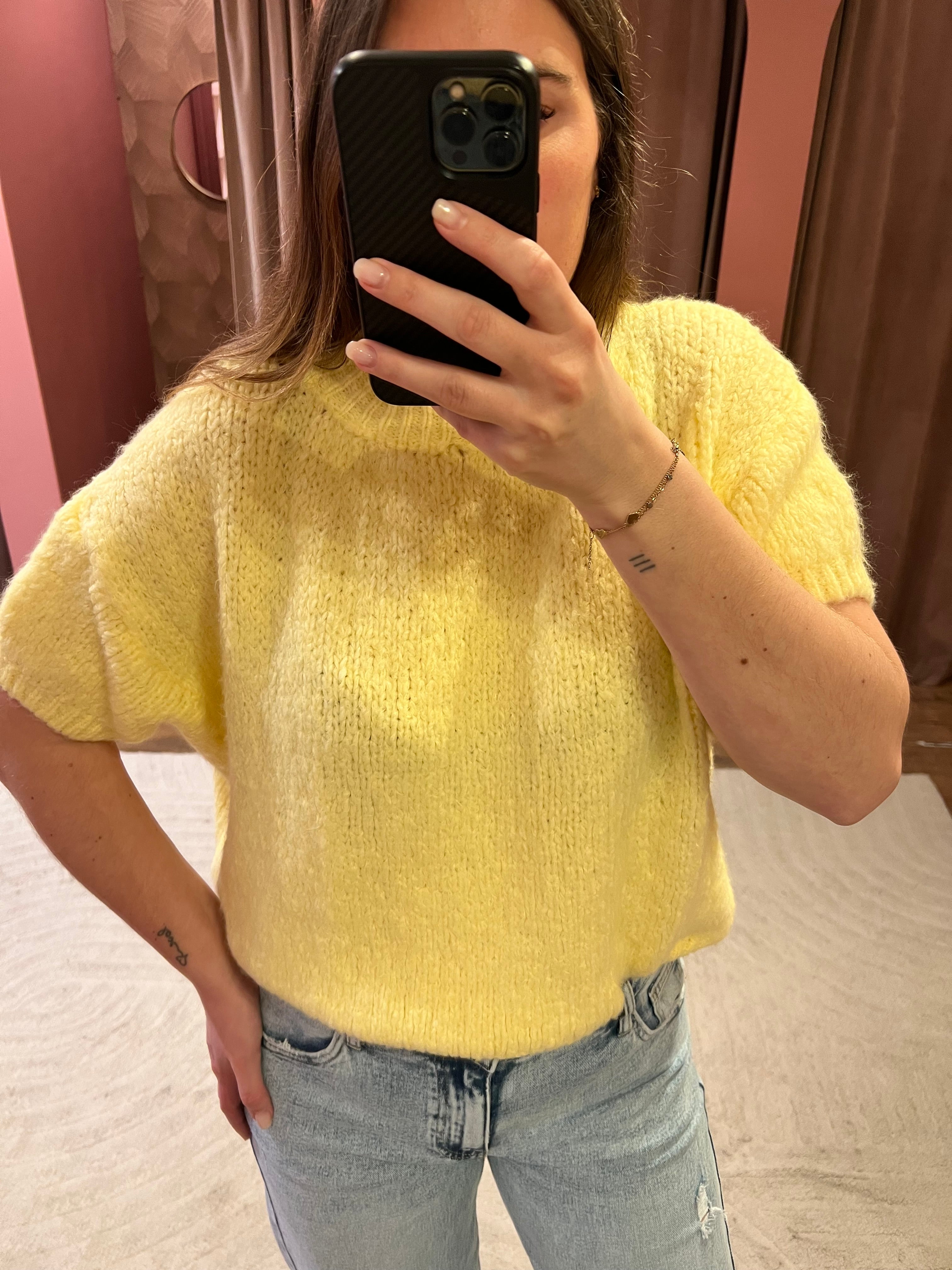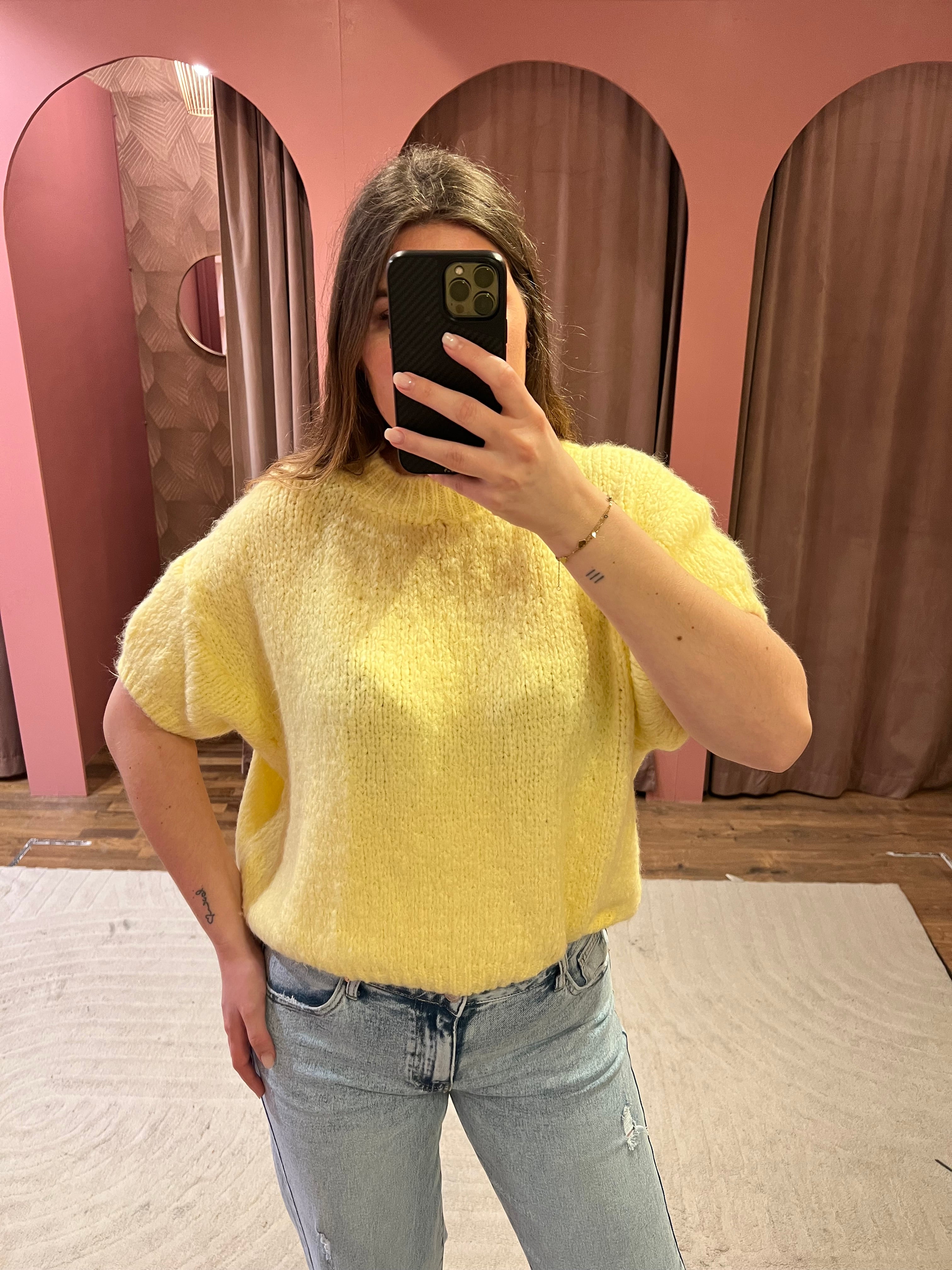 Hele leuke knit top! De trui heeft korte mouwen en een lekker zachte stof. In de trui zelf zit veel stretch.